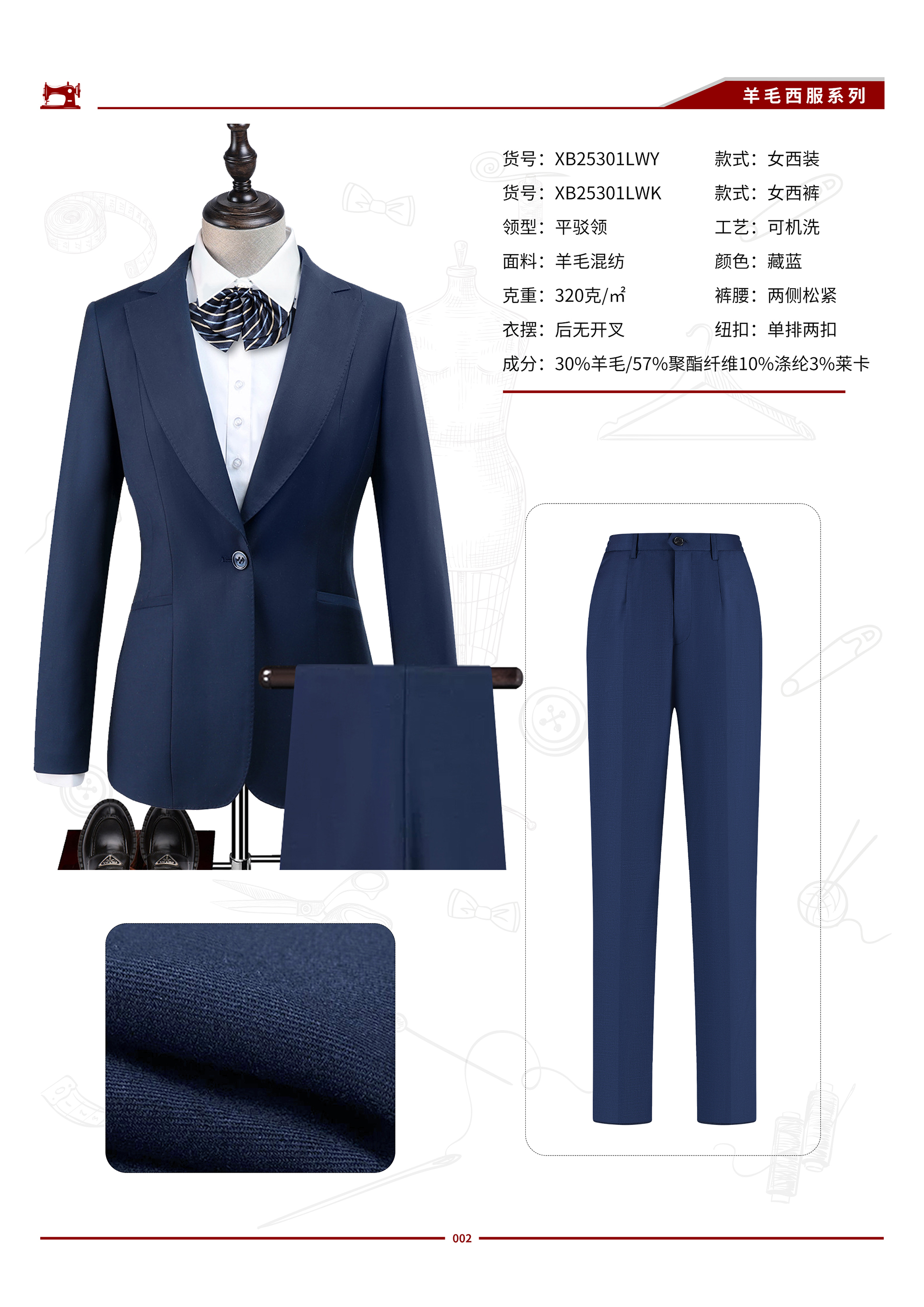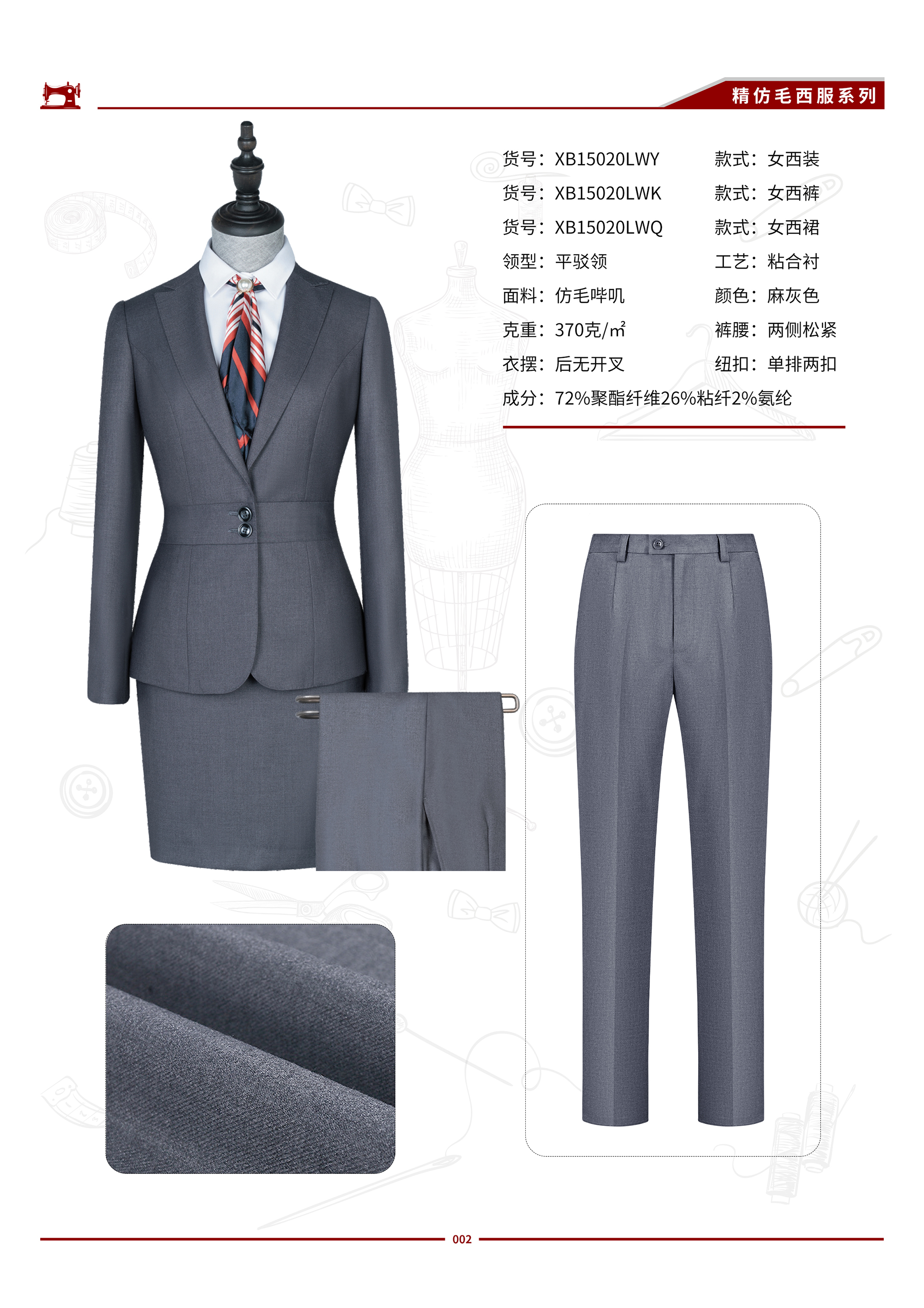 XB259901LW 女士100%羊毛半麻衬可机洗西服