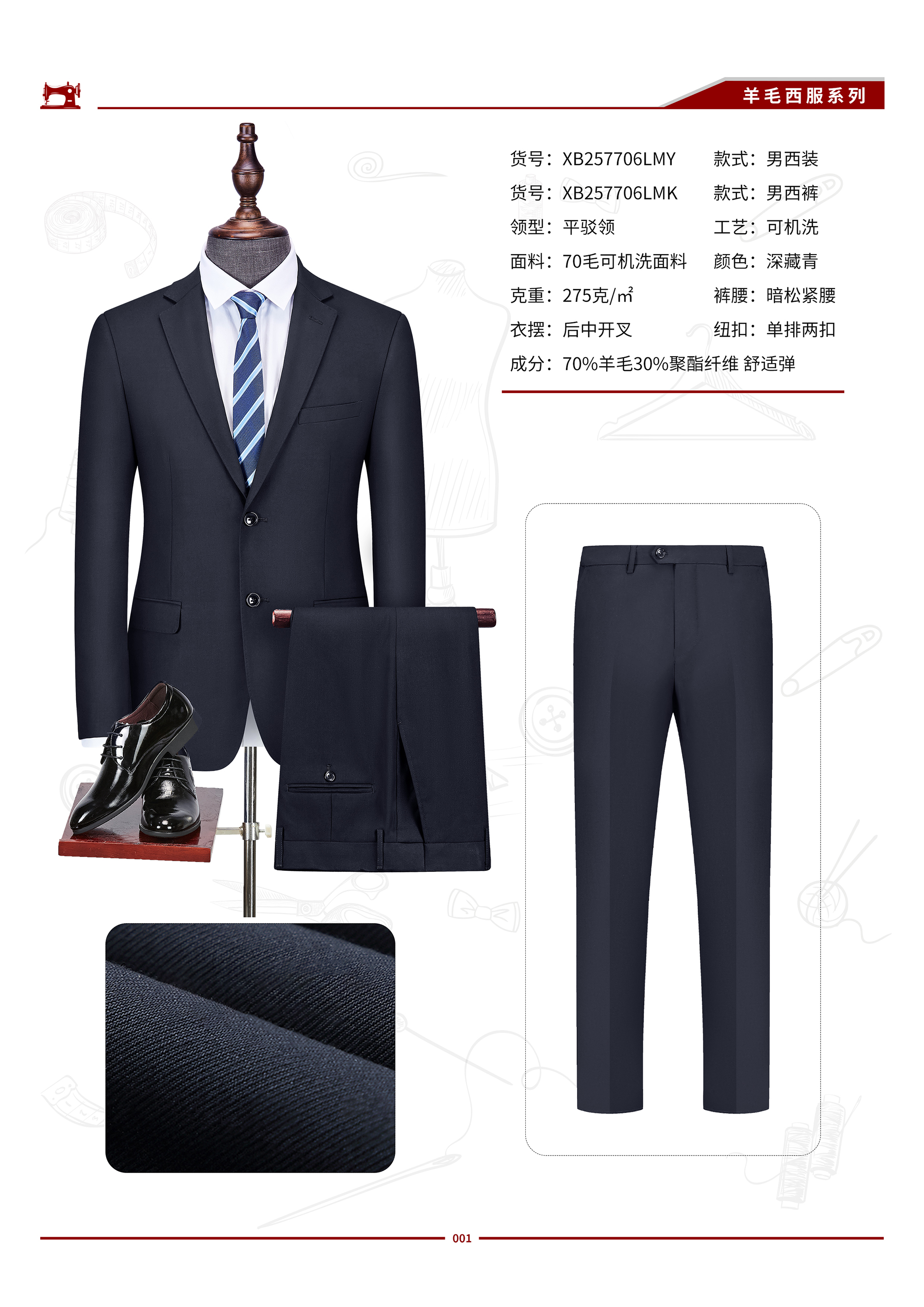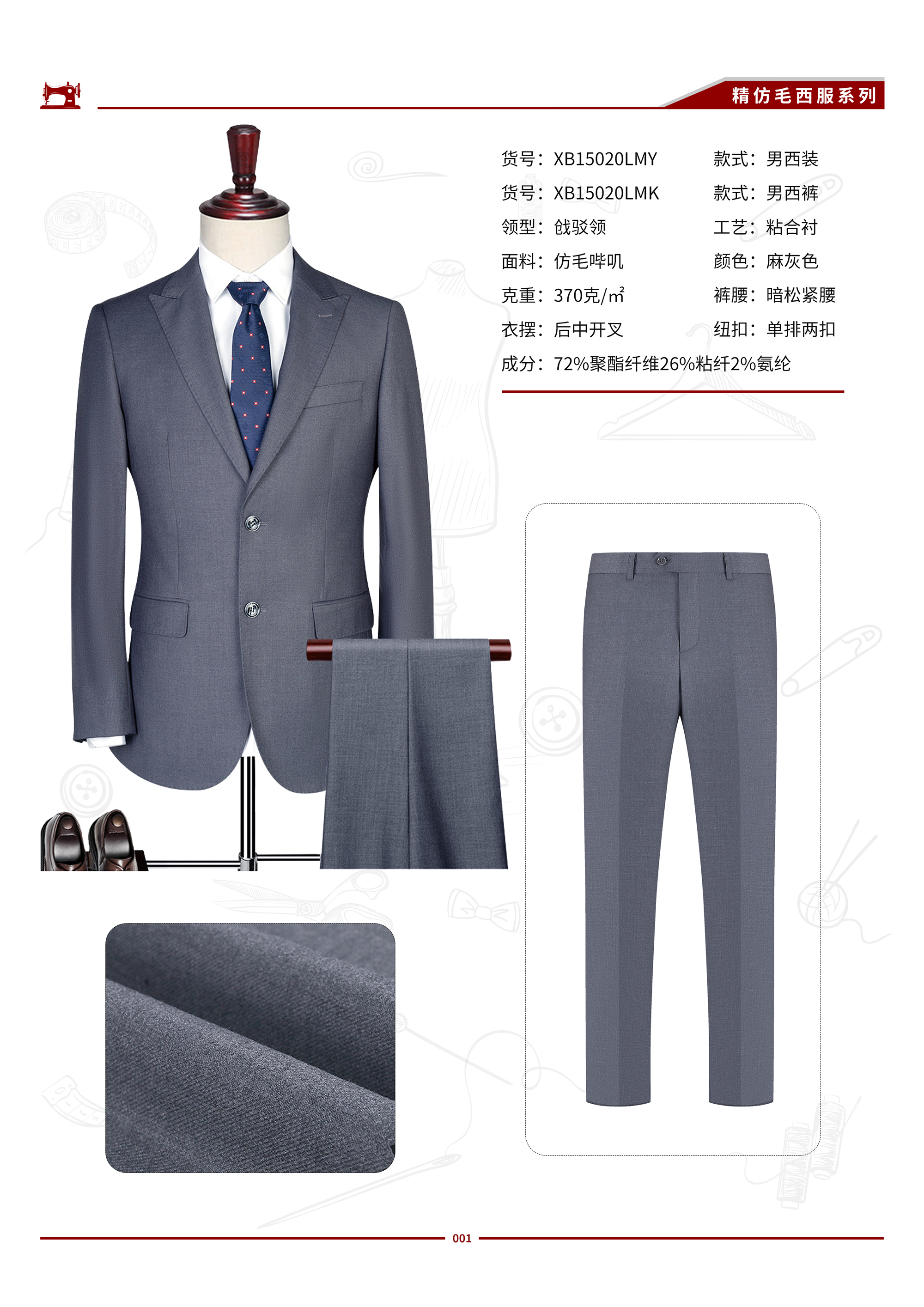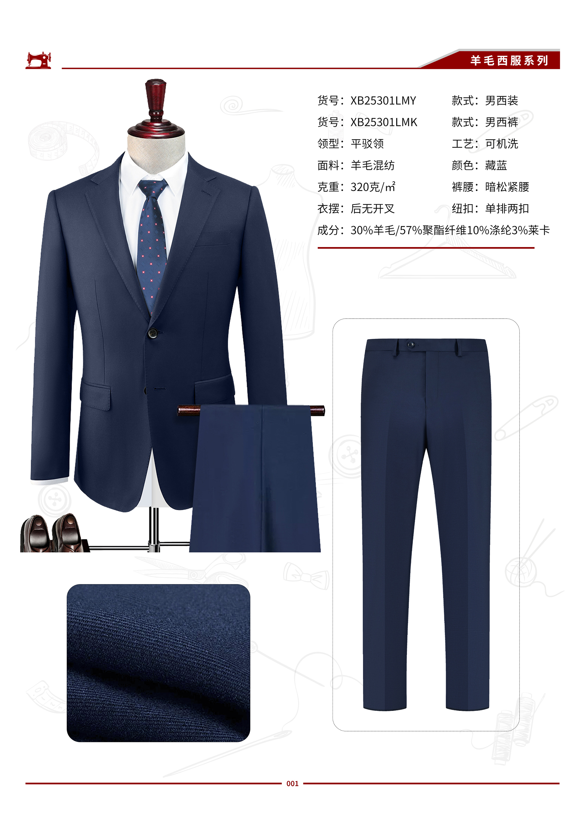 XB259901LM 男士100%羊毛半麻衬可机洗西服