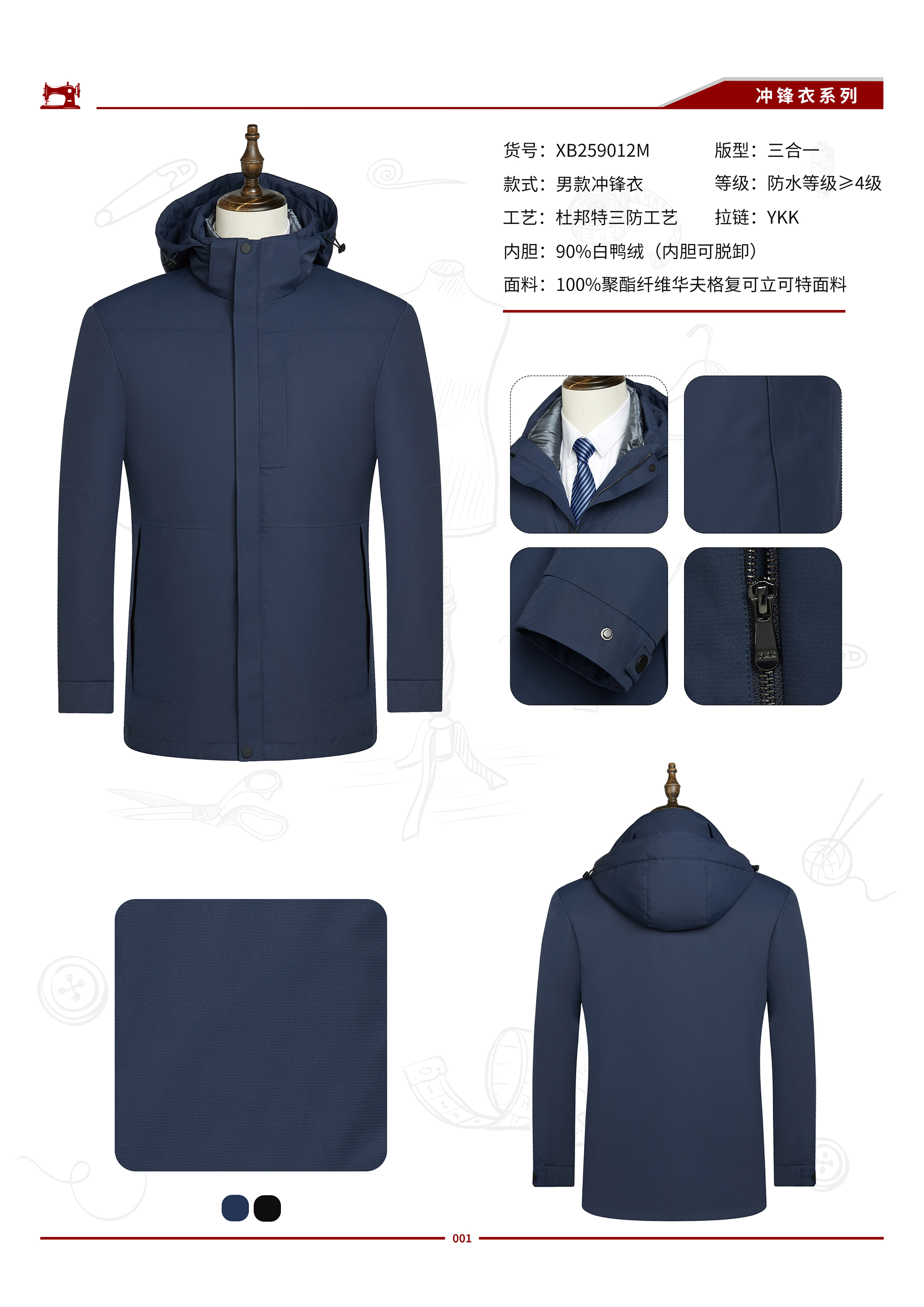 XB259012M 男士90%鹅绒冲锋衣