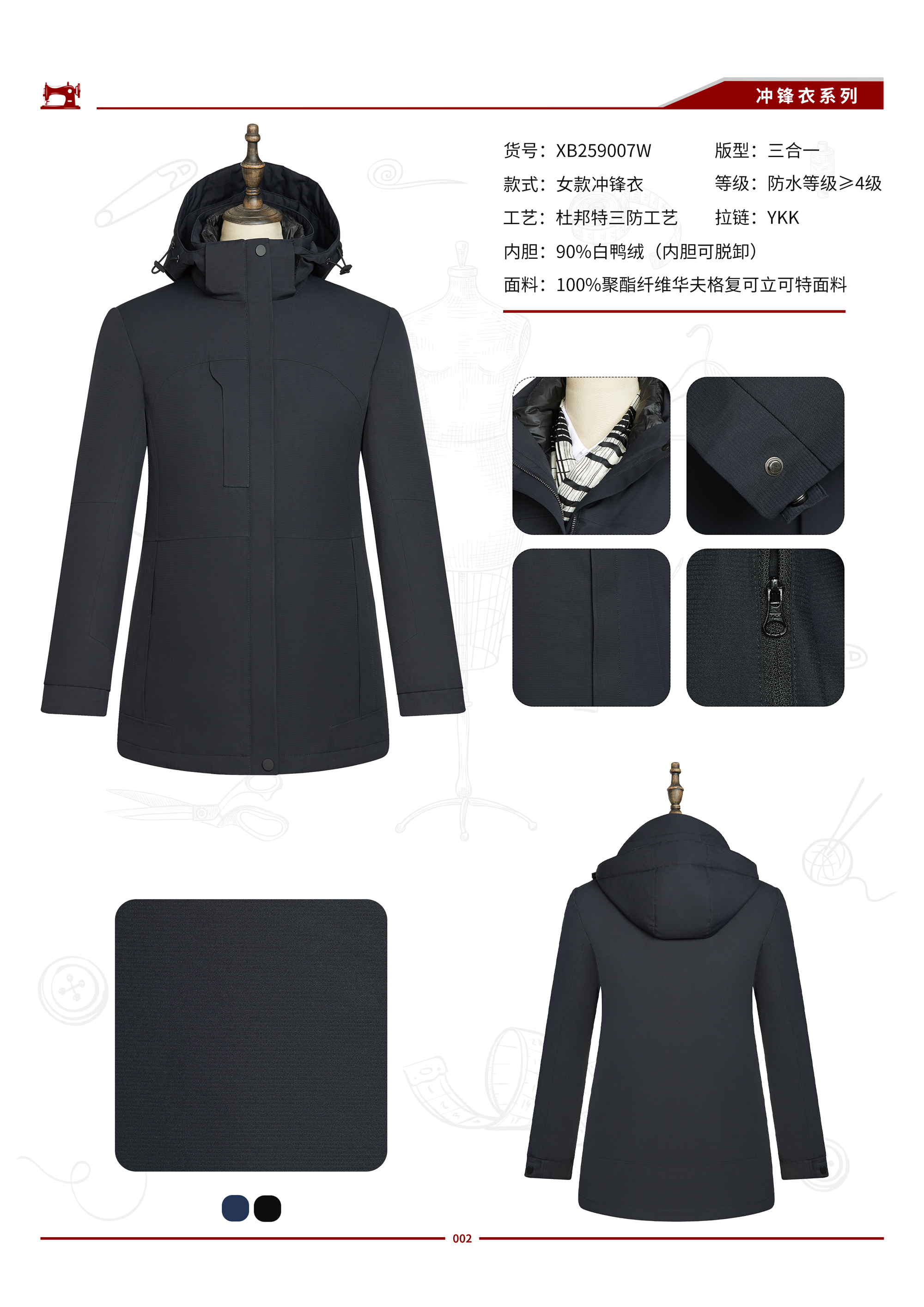 XB259007W 女士90%鹅绒冲锋衣
