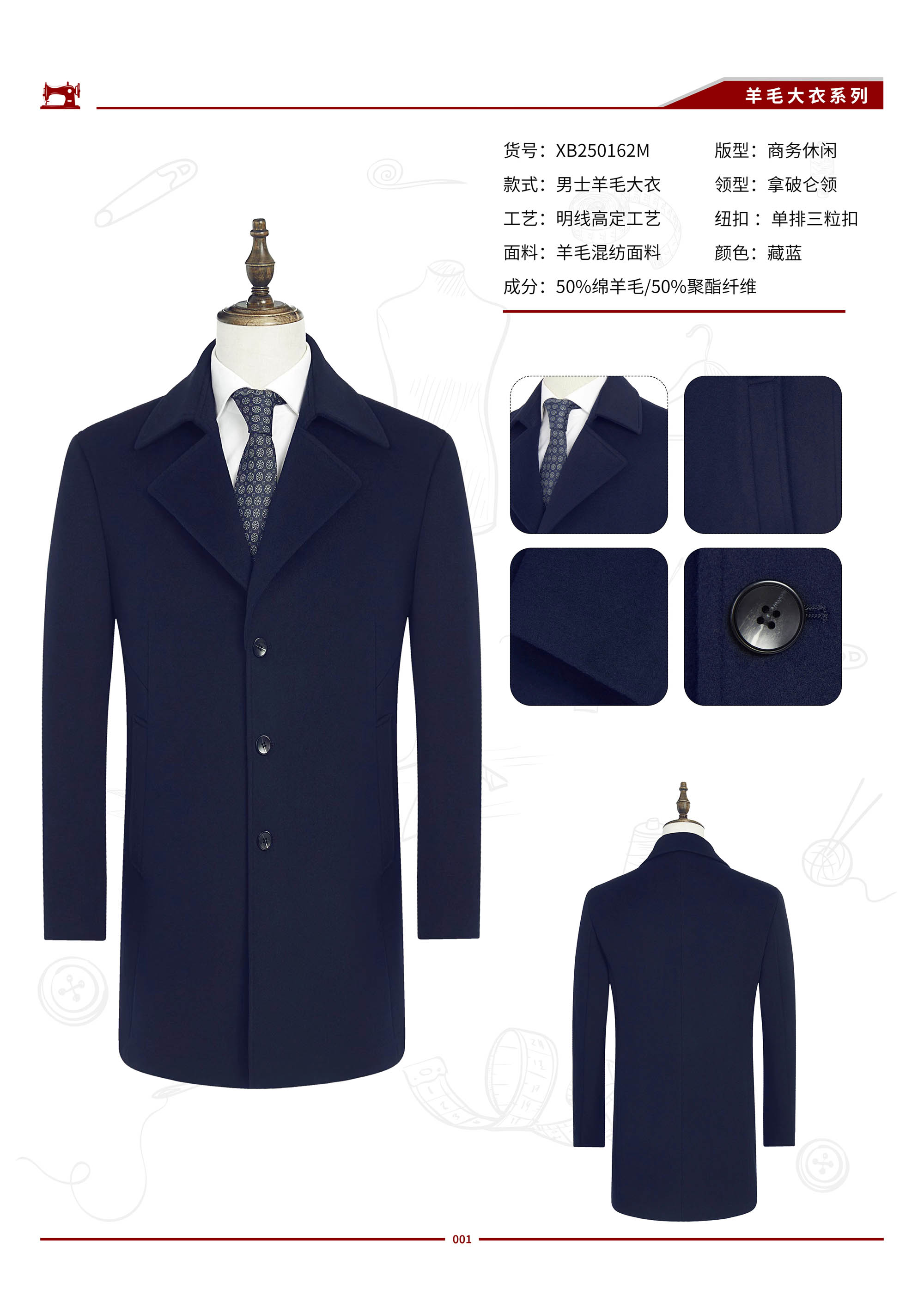 XB25Y0188BM 男士50%羊毛暗扣大衣