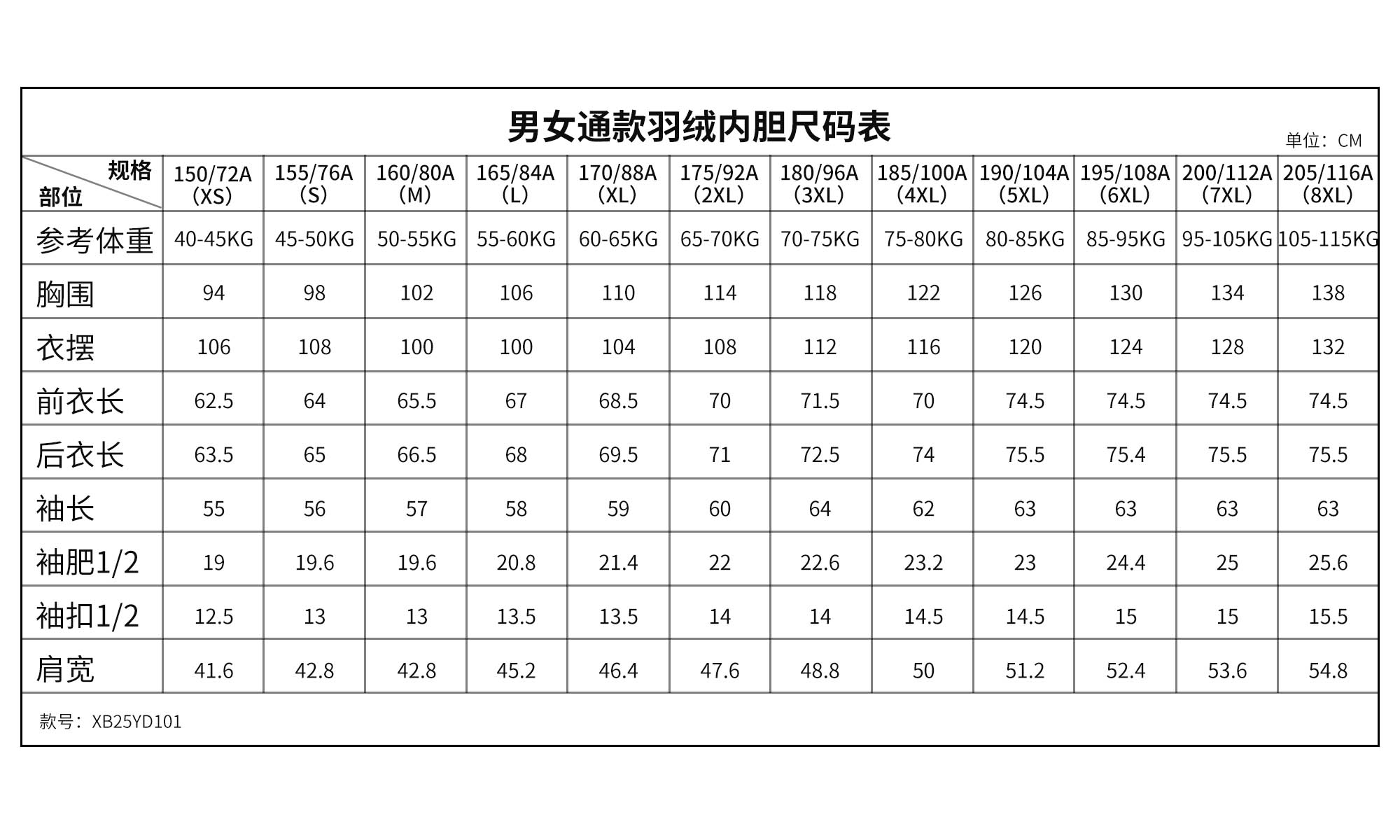 品名 XB25CF1010 男女通款90%白鸭绒冲锋衣