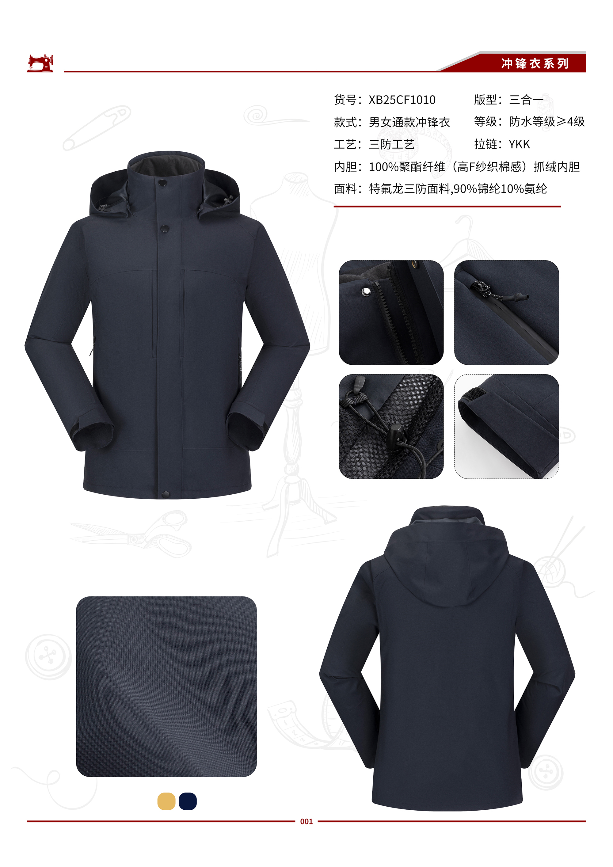 XB25CF1010 男女通款三防高密绒冲锋衣
