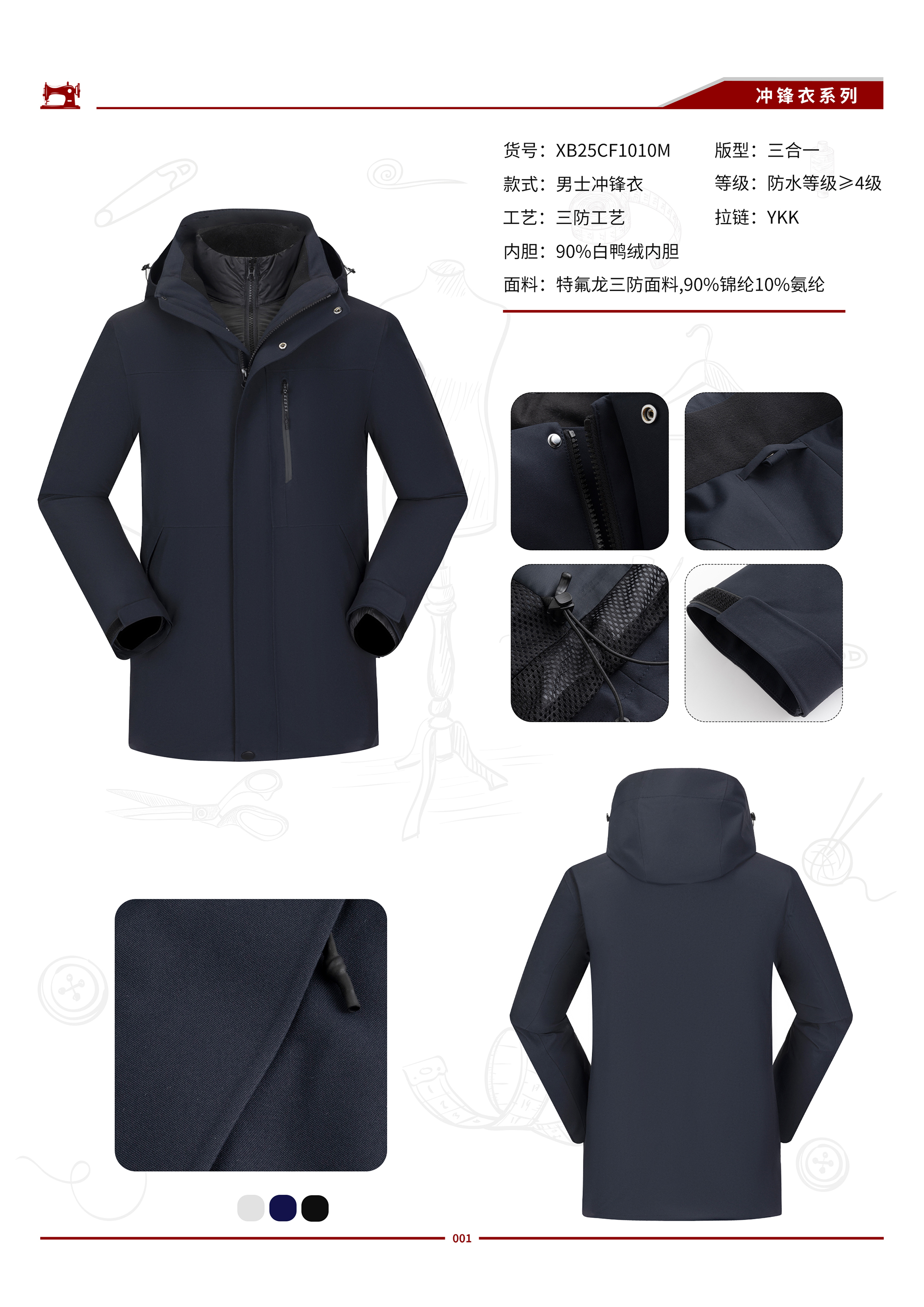 工艺 防水10000/透气10000/一衣三穿/YKK拉链