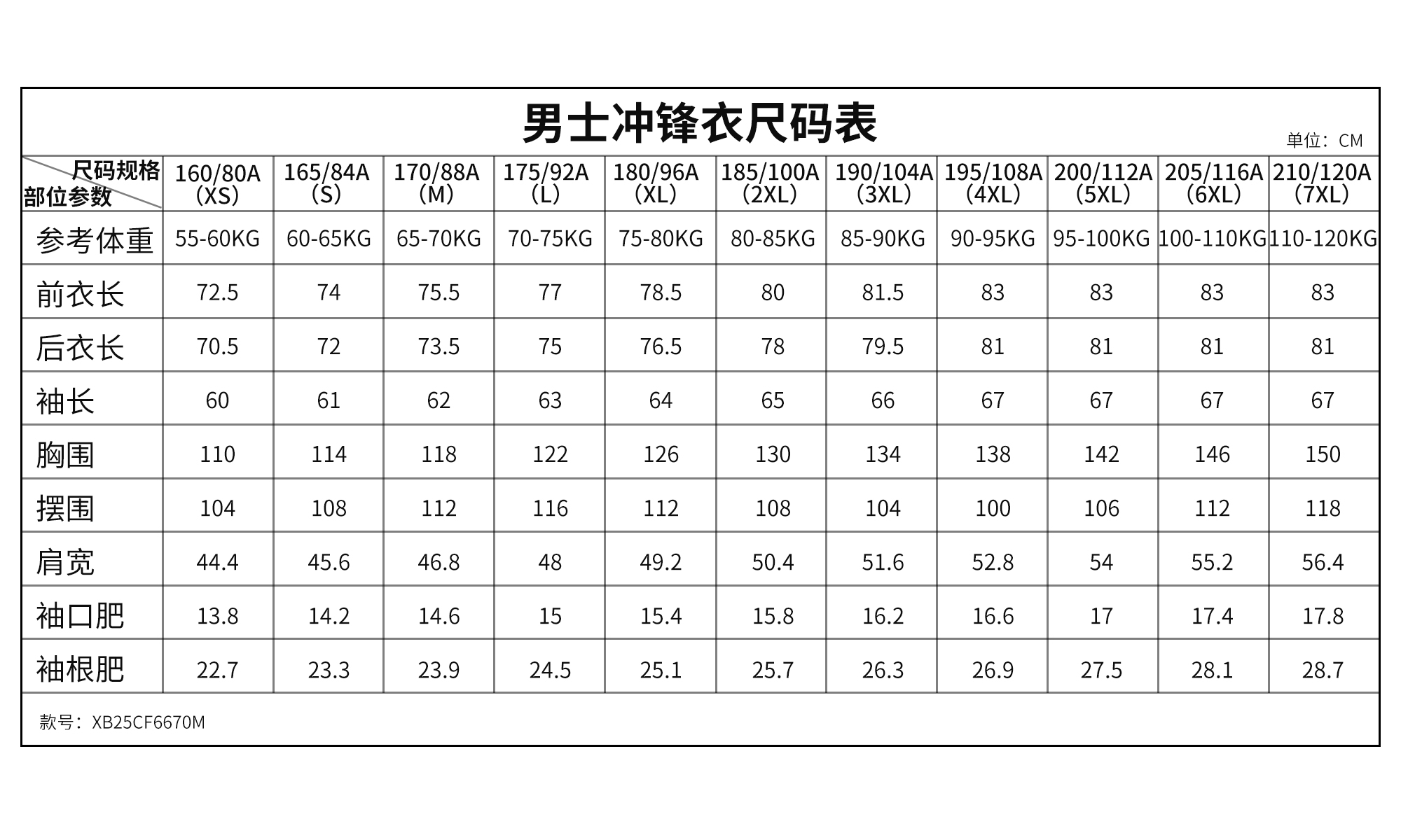 货号 XB25CF6670M