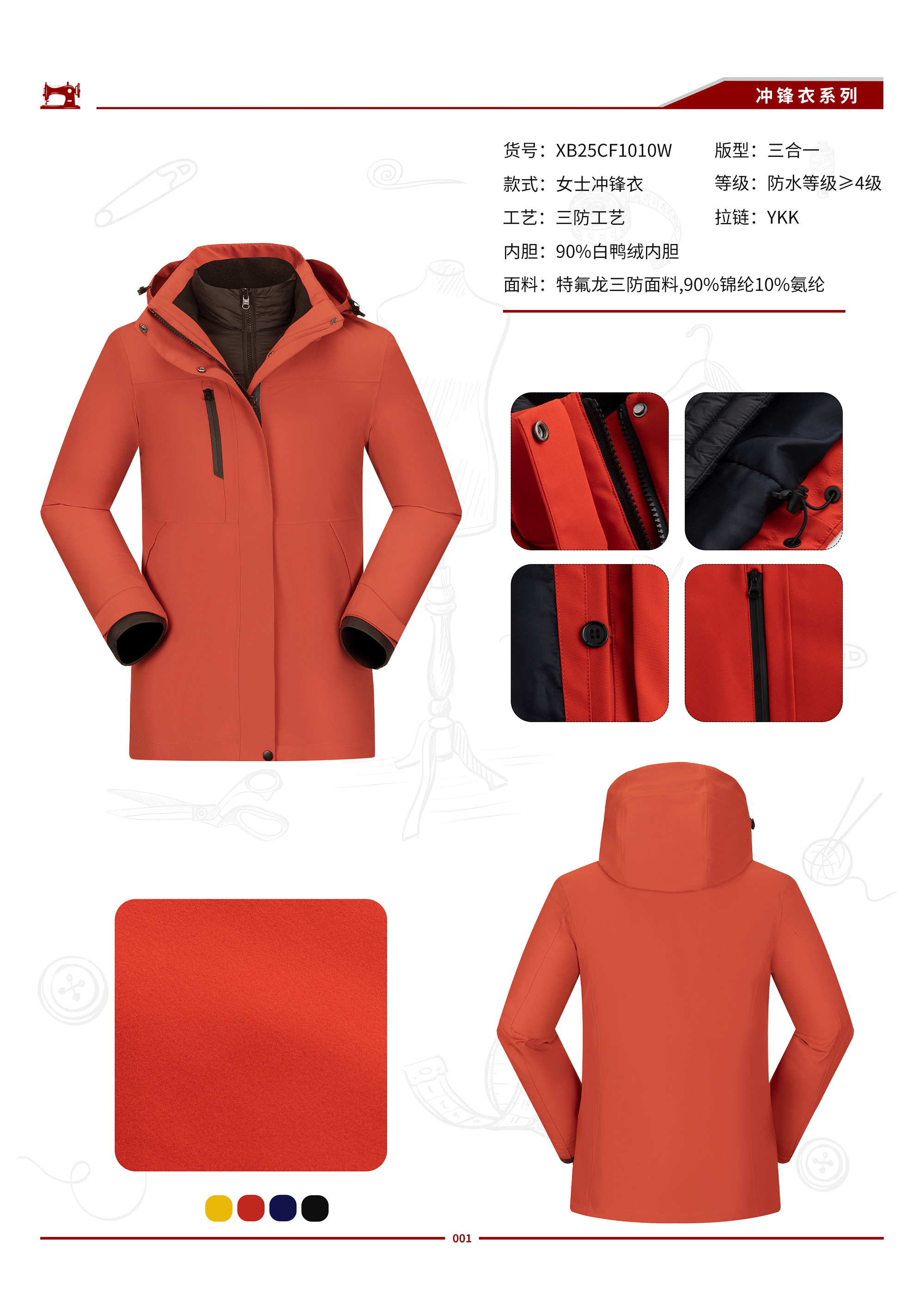防水10000/透气10000/一衣三穿/YKK拉链