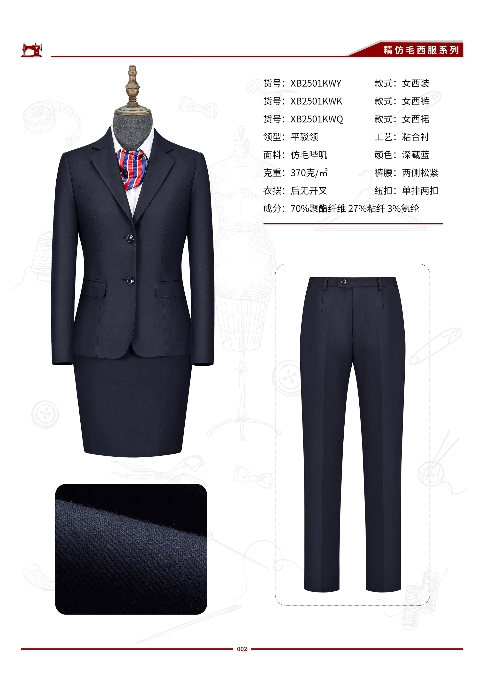 XB2501KW 女士精仿毛西服(27个码)