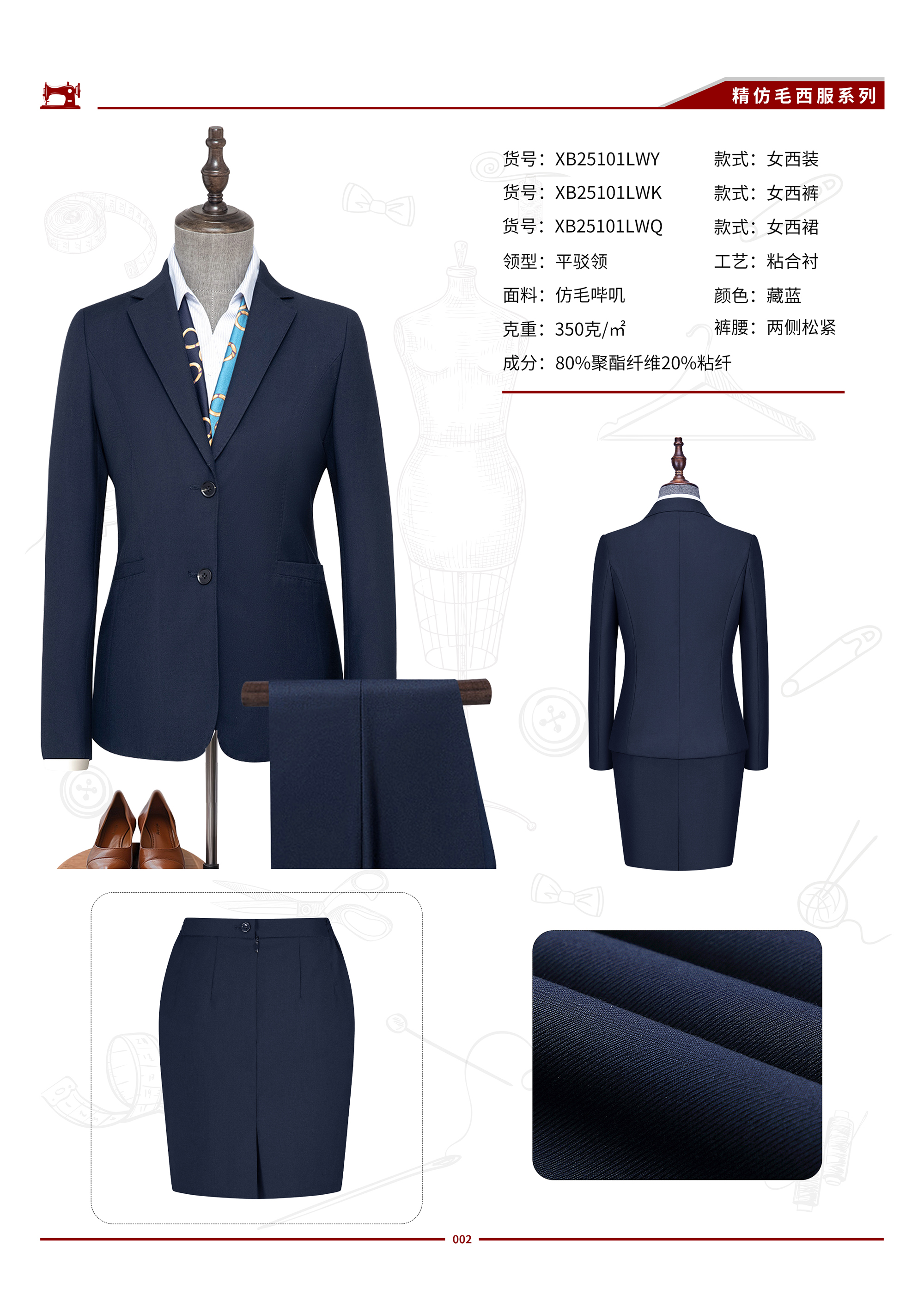 XB25101LW 女士仿毛双扣西服