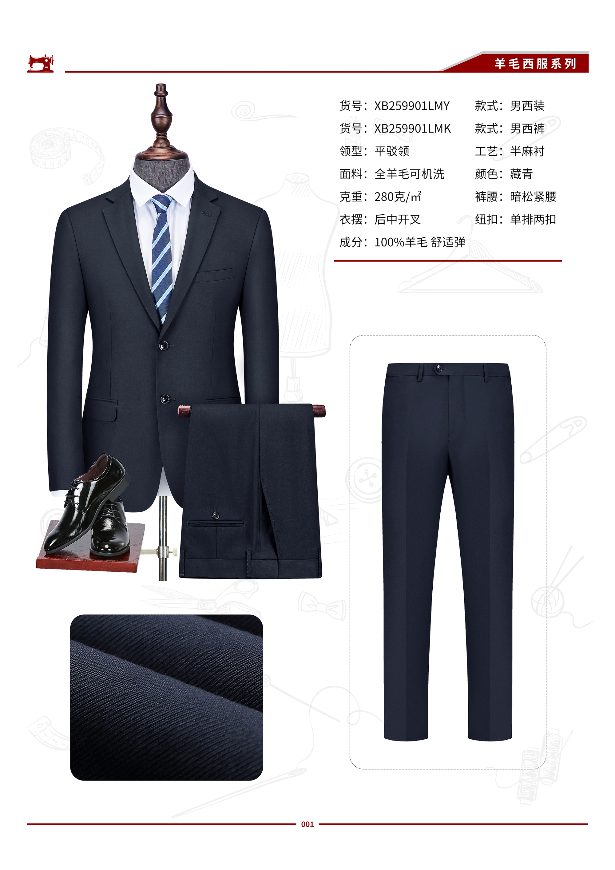 XB259901LM 男士100%羊毛半麻衬可机洗西服